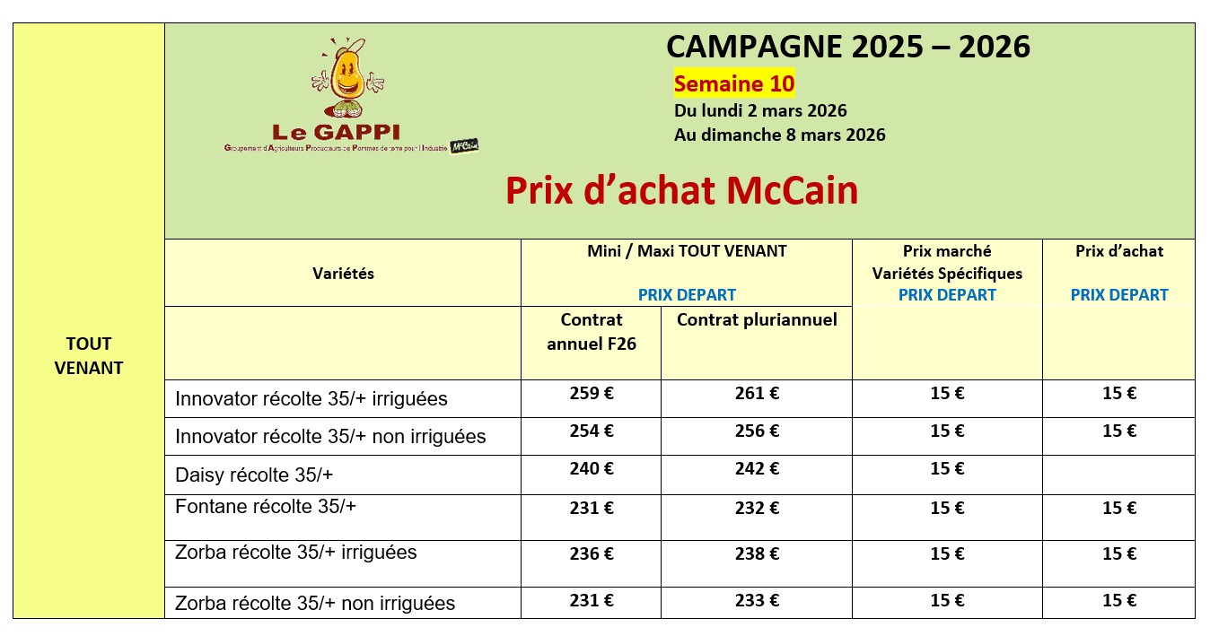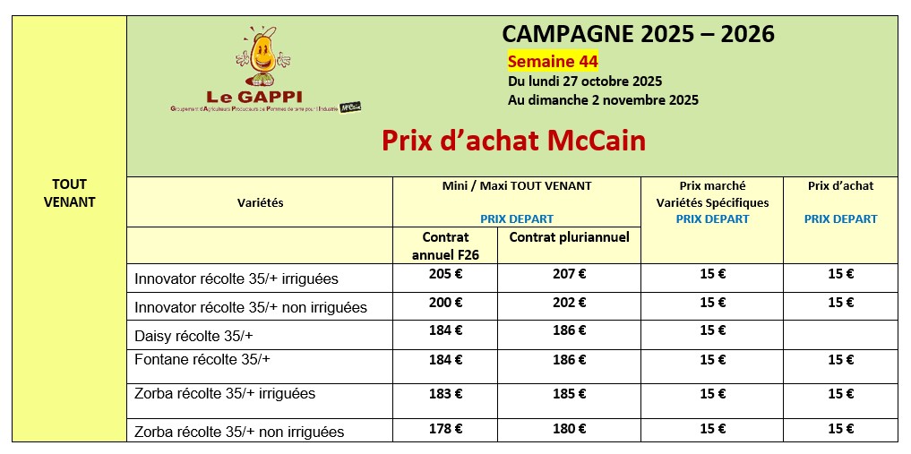 – facilite la relation avec les agriculteurs en lien avec le Gappi (Groupement d’Agriculteurs Producteurs de pommes de terre pour l’industrie)